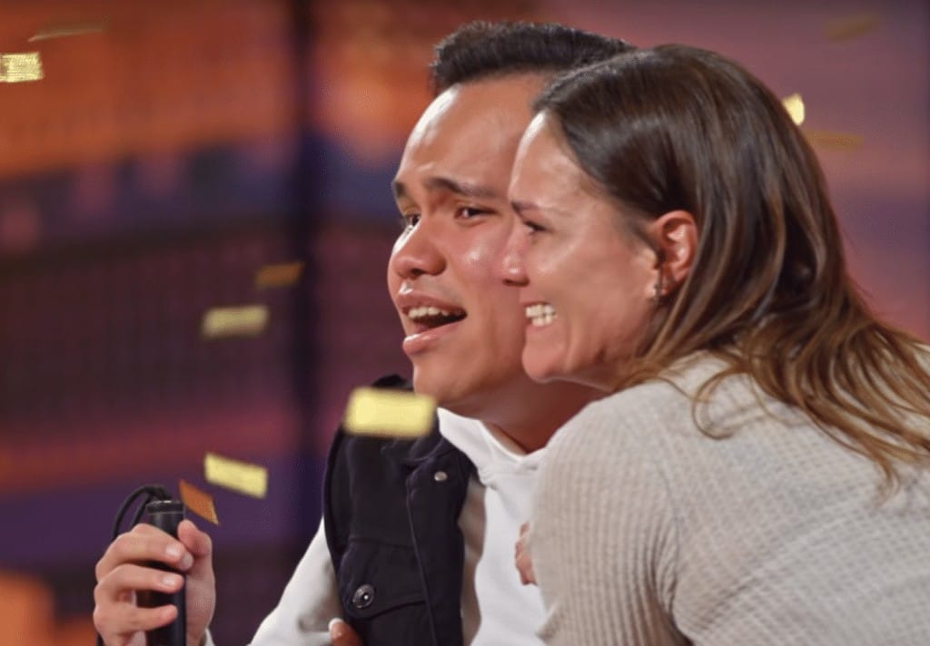 Kodi is blind and has autism. He was guided on stage by his mother. Mom says they discovered their son loved music early on his life. He would listen to it and his eyes would get big and he would just start singing.