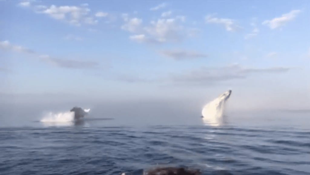 Move over double rainbow! We have a TRIPLE WHALE BREACH!