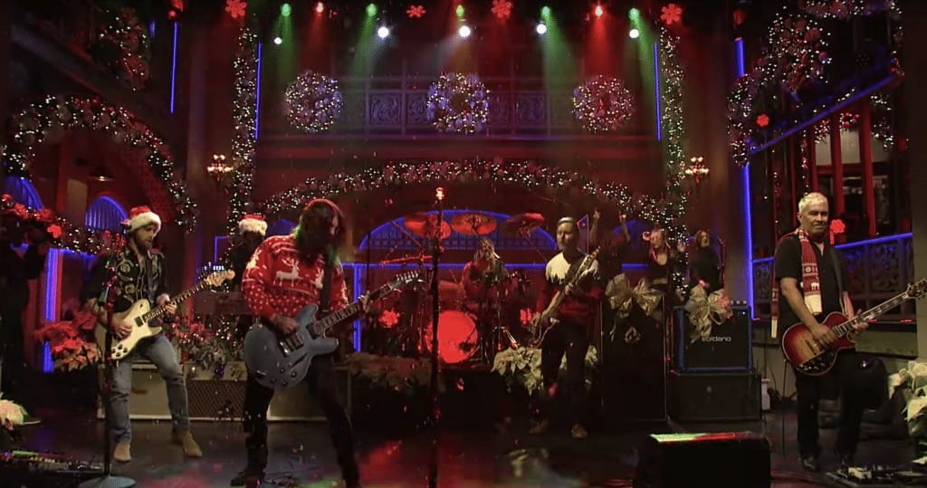 Foo Fighters were the musical guest on Saturday Night Live last night. For their last set of the show, they threw on the holiday sweaters and put together an incredible mashup of Everlong, Christmas (Baby Please Come Home) and Linus and Lucy from A Charlie Brown Christmas.